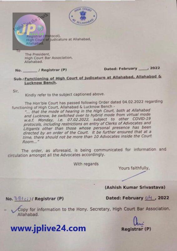 On 04 February 2022 (Friday), the Allahabad High Court decided to resume hybrid hearing both at Allahabad and Lucknow with effect from 07 February 2022 (Monday).